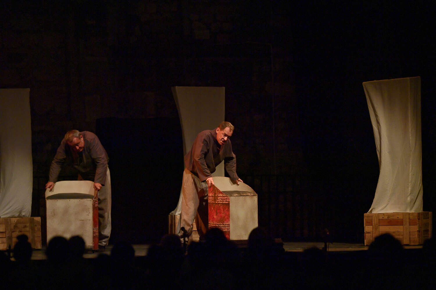 C’est sur cette base que le travail de plateau a commencé. A partir d’un décor minimaliste. Un coffre-tombe-bar-banc-car que l’on fait tournoyer sur scène.
